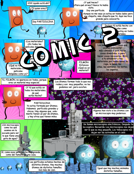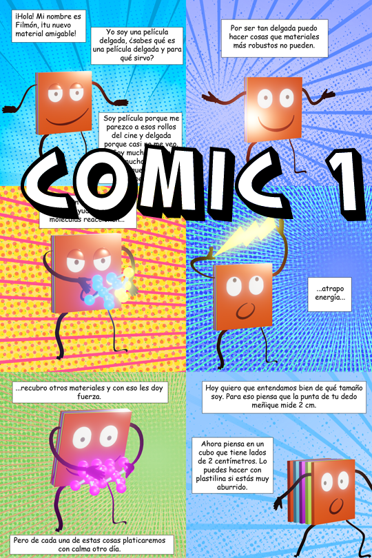 En el departamento de Materiales de Baja Dimensionalidad del Instituto de Investigaciones en Materiales de la Universidad Nacional Autónoma de México hemos creado dos personajes; Particulina y Filmón, nuestros materiales amigables. Ellos dos, a través de estas historietas, se encargarán de platicarte de “los materiales”, cómo se hacen, para que sirven y de que están hechos, entre muchas otras cosas más.